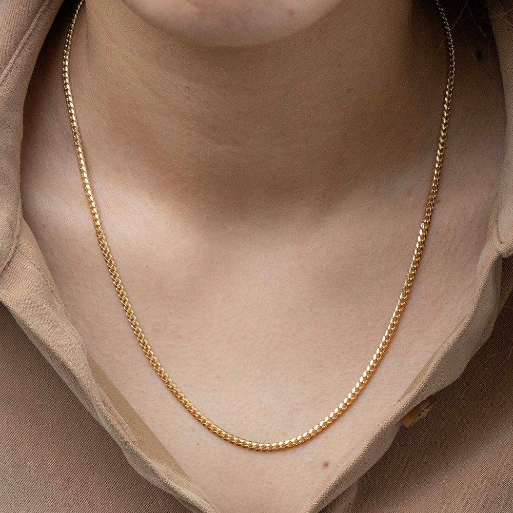 Nuestras cadenas de Plata 925 enchapada en Oro 18K (Goldfield) son el complemento perfecto para quienes buscan versatilidad y estilo en una sola pieza. Su diseño atemporal permite lucirlas solas para un look minimalista o combinarlas con dijes y accesorios para un toque más personal y elegante.